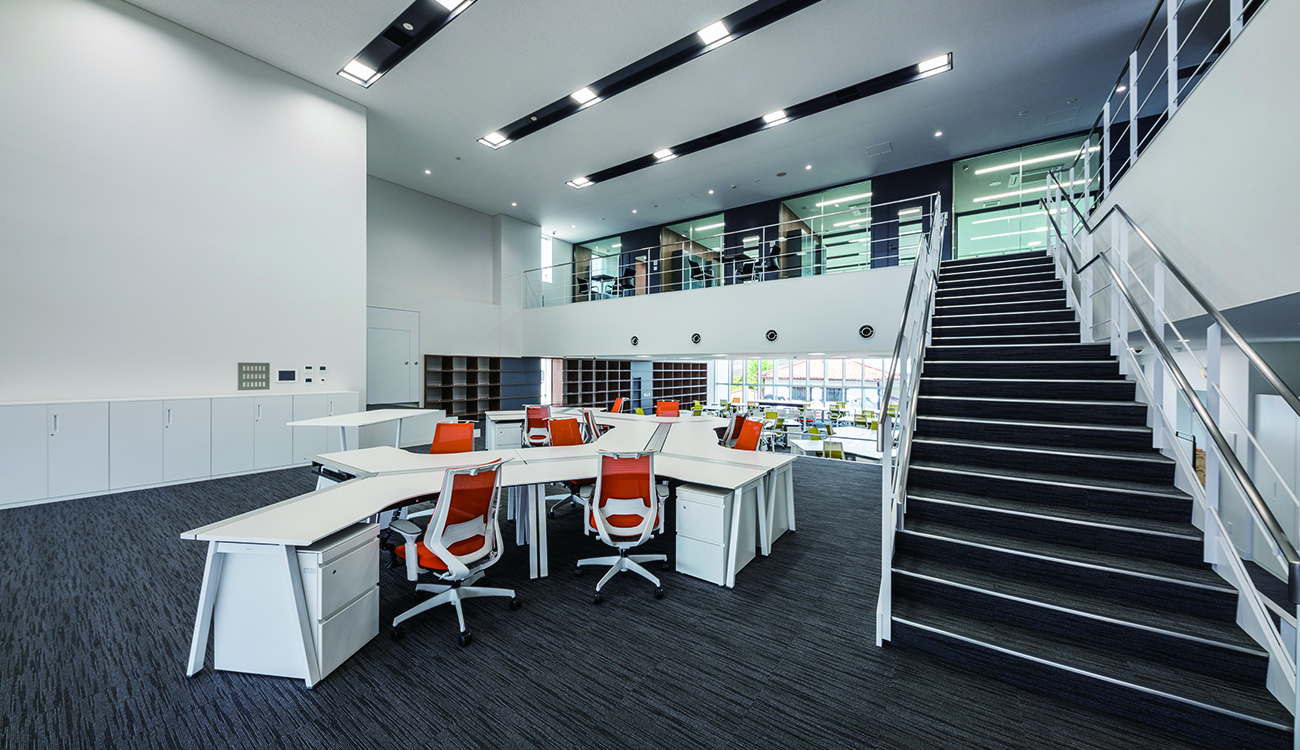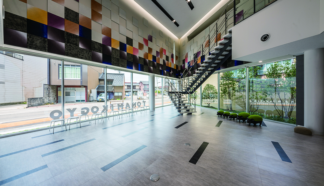 創業75周年を期に砺波市に本社を移転する計画。実施設計業務として弊社が携わらせていただきました。 地域に開かれた「コミュニティ棟」と事務所としての「オフィス棟」の2棟で構成された建築となっています。2棟の間には地域に開放したピロティを設け、様々なイベントを開催したり、地域の祭り時には夜高行燈を展示するなど情報発信を行うスペースとしています。外部はカーテンウォールにアルミフィンを設置しリズムを生み出すと伴に、西日対策としたファサードデザインとしています。内部はオフィスをスキップフロアとし、フリーアドレスを採用するなど、様々コミュニケーションが生まれる仕掛けとしています。