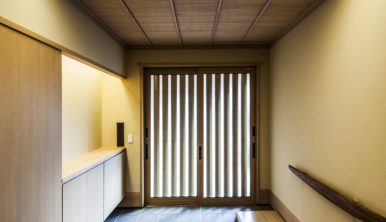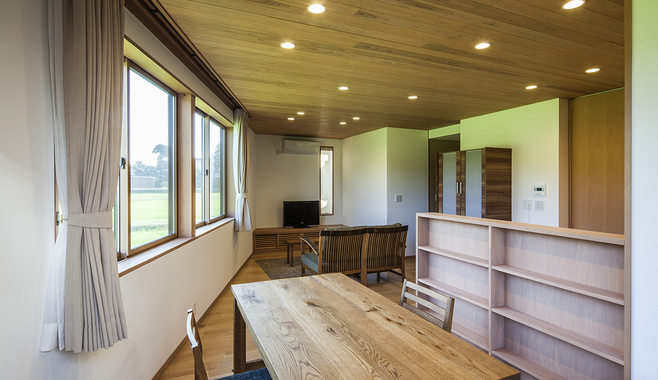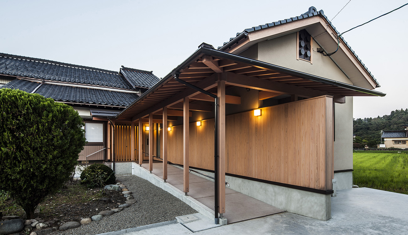 築100年以上経つ御堂に隣接する庫裏を解体し庫裏を新たに建てる計画。 親子2世帯の住まいとなり、親子互いの生活を干渉しない様、LDKから浴室まで分けて設けています。無垢の木の良さを大切にし床にカバザクラ、天井に杉を使用しています。既存部分を残しつつ工事を行う増築の難しさをクリアしながら最大限空間を活用できるようレイアウトを決めました。